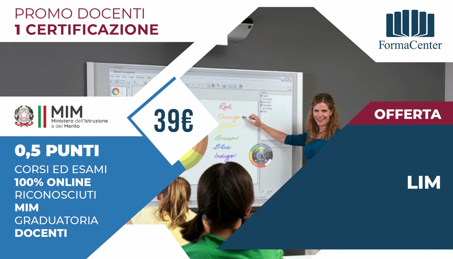 Il corso LIM è riconosciuto dal MIUR e rilasciato da RIMER Formazione ente di formazione, riconosciuto e iscritto nell'elenco definitivo dei soggetti accreditati per la formazione del personale della scuola dal Ministero della Pubblica Istruzione con m_pi.AOODPIT.REGISTRO DECRETI DIPARTIMENTALl(R).0001365.07-08-2023.