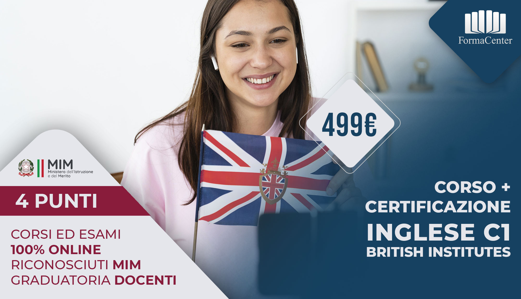 Formacenter ti offre il video corso online fruibile sul nostro sito fad.formacenter.it con la possibilità di iscriverti direttamente all'esame finale per conseguire la Certificazione linguistica con esami online.