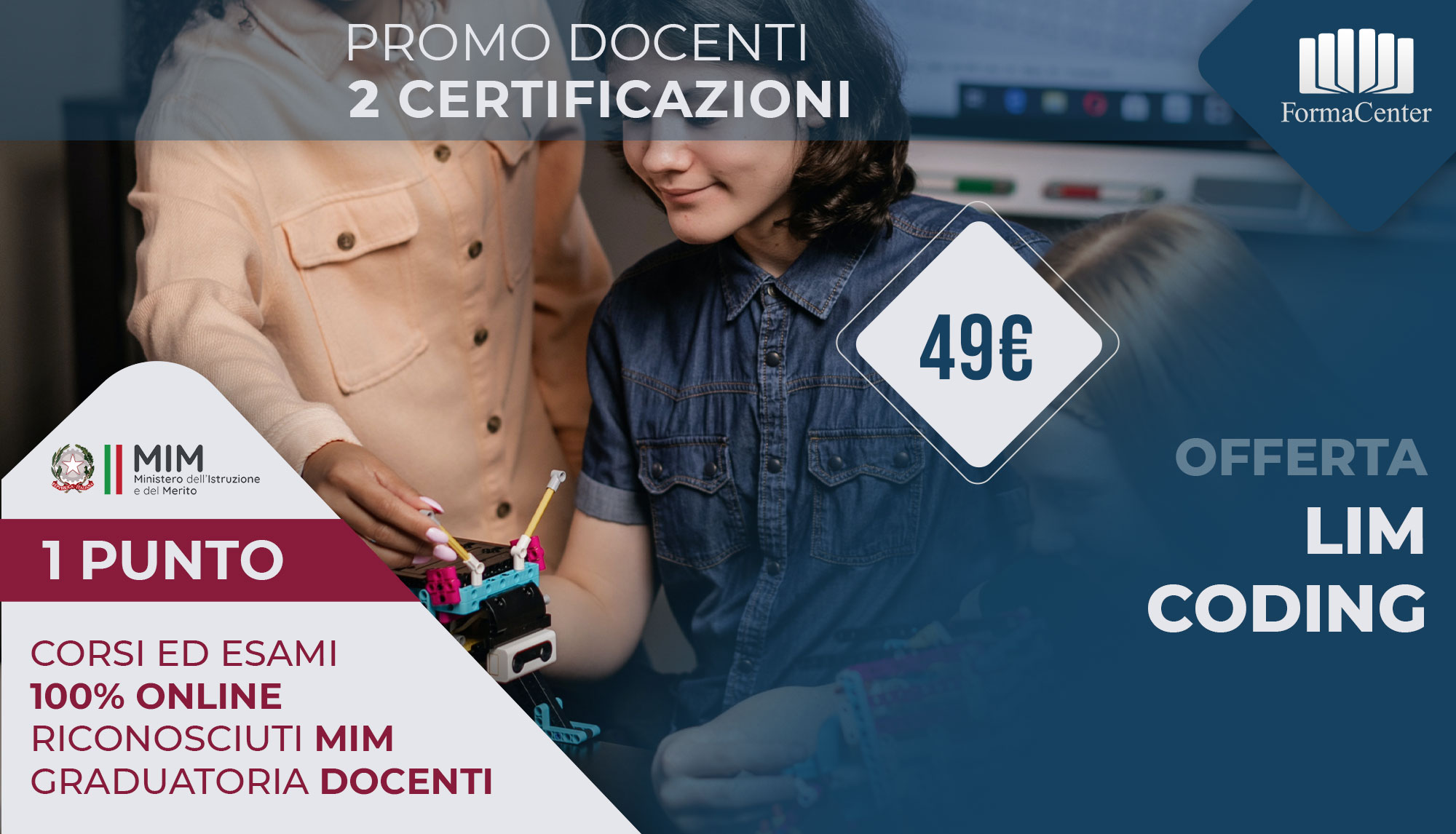 Il corso proposto consente il conseguimento della Certificazione informatica denominata: "CODING – Programmazione informatica e pensiero computazionale", indispensabile soprattutto per chi vuole ampliare il proprio bagaglio di docente o comunque aspira all'ingresso nel settore scolastico sia in ambito amministrativo che educativo.