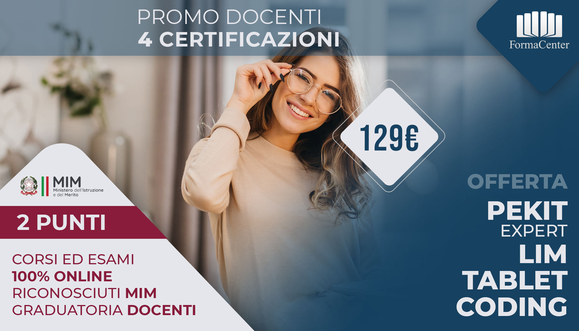 Il corso proposto consente il conseguimento della Certificazione informatica denominata: "CODING – Programmazione informatica e pensiero computazionale", indispensabile soprattutto per chi vuole ampliare il proprio bagaglio di docente o comunque aspira all'ingresso nel settore scolastico sia in ambito amministrativo che educativo.