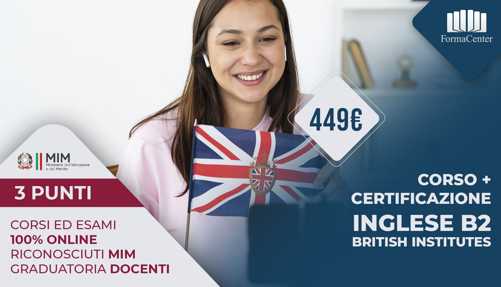 La certificazione d'inglese B2 rilasciata da BRITISH INSTITUTES è riconosciuta dal MIUR, equivale al livello B2 nel QCER e certifica un vocabolario avanzato e una buona conoscenza della struttura linguistica.