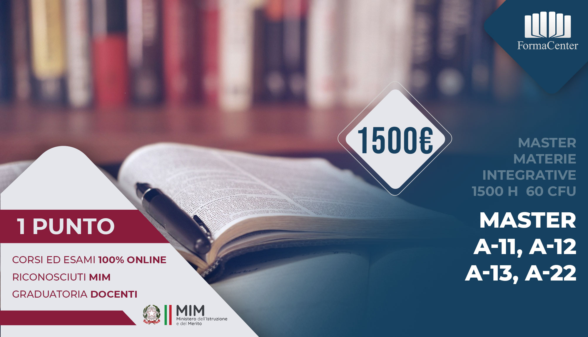 Il Master per l'insegnamento delle Discipline letterarie, latino e greco negli Istituti Secondari di I e II grado è progettato come corso di formazione post laurea magistrale per il completamento della formazione interdisciplinare necessaria per accedere alla classi di concorso per l'insegnamento A11, A12, A13, A22 e al relativo Tirocinio Formativo Attivo, con il possesso dei crediti formativi necessari ai sensi della Tabella Ministeriale di riferimento (classe concorsuale A11, A12, A13, A22, DPR 14 febbraio 2016, n. 19, nonché il recente DM 259 del 9 maggio 2017).