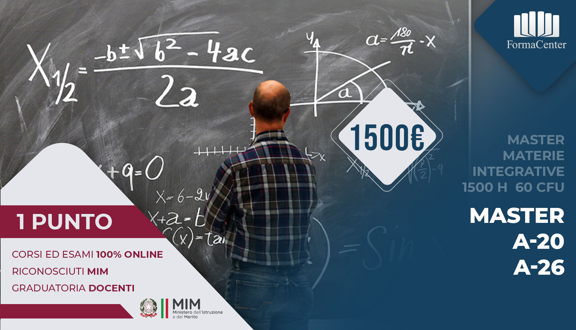 Il Master per l'insegnamento di Matematica e Fisica nelle scuole secondarie di 2° grado è progettato come corso di formazione post laurea magistrale per il completamento della formazione interdisciplinare necessaria per accedere alle classi di concorso per l'insegnamento A20 e A26 e al relativo Tirocinio Formativo Attivo, con il possesso dei crediti formativi necessari ai sensi della Tabella Ministeriale di riferimento (classe concorsuale A20, A26, DPR 14 febbraio 2016, n. 19, nonché il recente DM 259 del 9 maggio 2017).