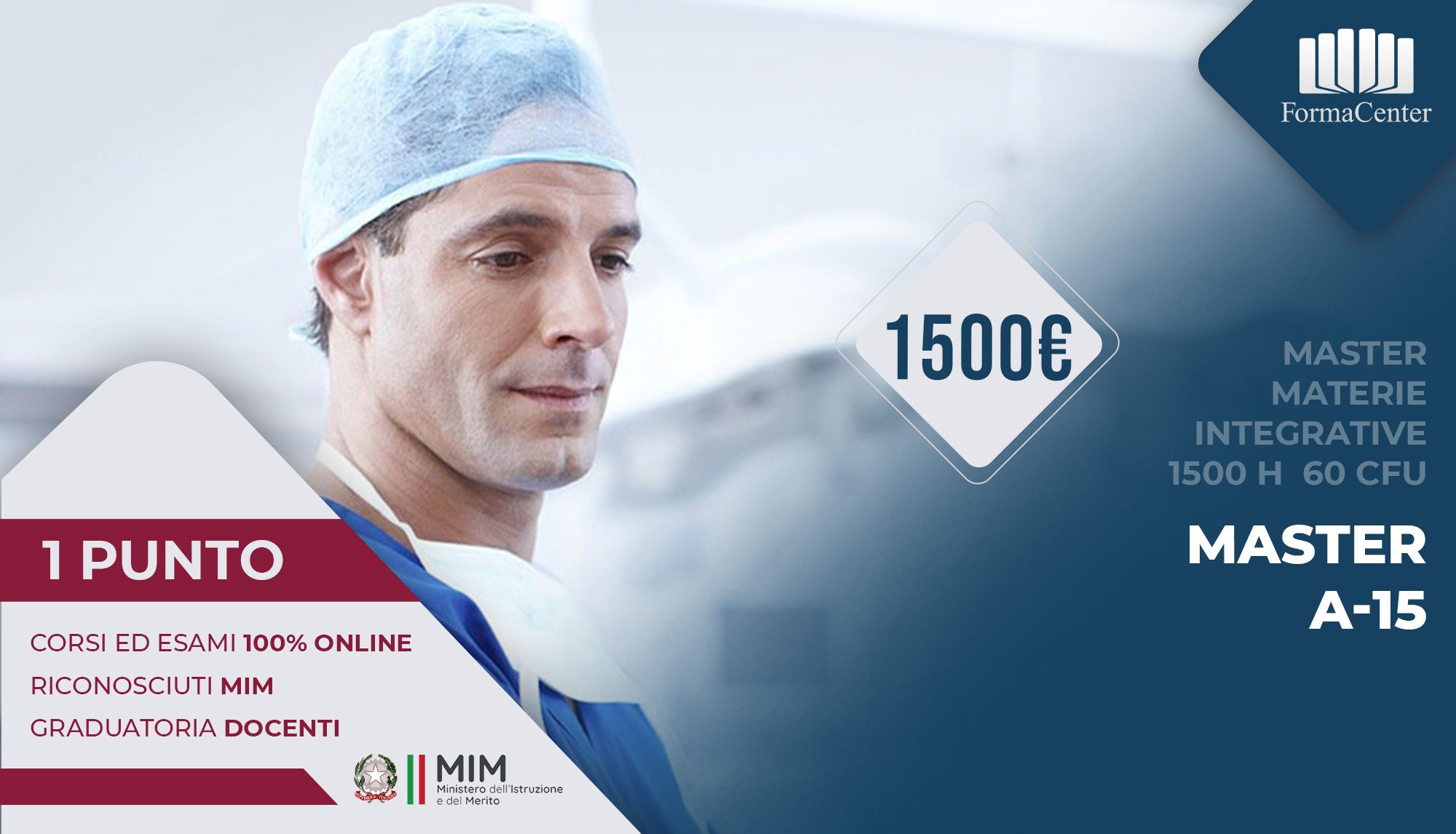 Inoltre il Master per l'insegnamento delle Discipline sanitarie nelle scuole secondarie di 2° grado è progettato come corso di formazione post laurea magistrale per il completamento della formazione interdisciplinare necessaria per accedere alla classe di concorso per l'insegnamento A-15 e al relativo Tirocinio Formativo Attivo, con il possesso dei crediti formativi necessari ai sensi della Tabella Ministeriale di riferimento (classe concorsuale A-15, DPR 14 febbraio 2016, n. 19, nonché il recente DM 259 del 9 maggio 2017).