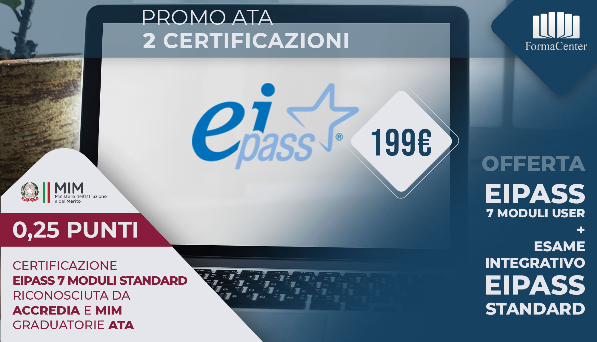 L'EIPASS 7 Moduli Standard è una certificazione internazionale di alfabetizzazione digitale che si conforma alle normative europee e viene riconosciuta da Accredia e dal Ministero dell'Istruzione (MIUR). Questa certificazione attesta il possesso di competenze intermedie nell'uso degli strumenti ICT e costituisce un titolo valido per ottenere punti in ambito scolastico, universitario e concorsuale, oltre a poter essere indicata nel curriculum vitae nelle competenze digitali.