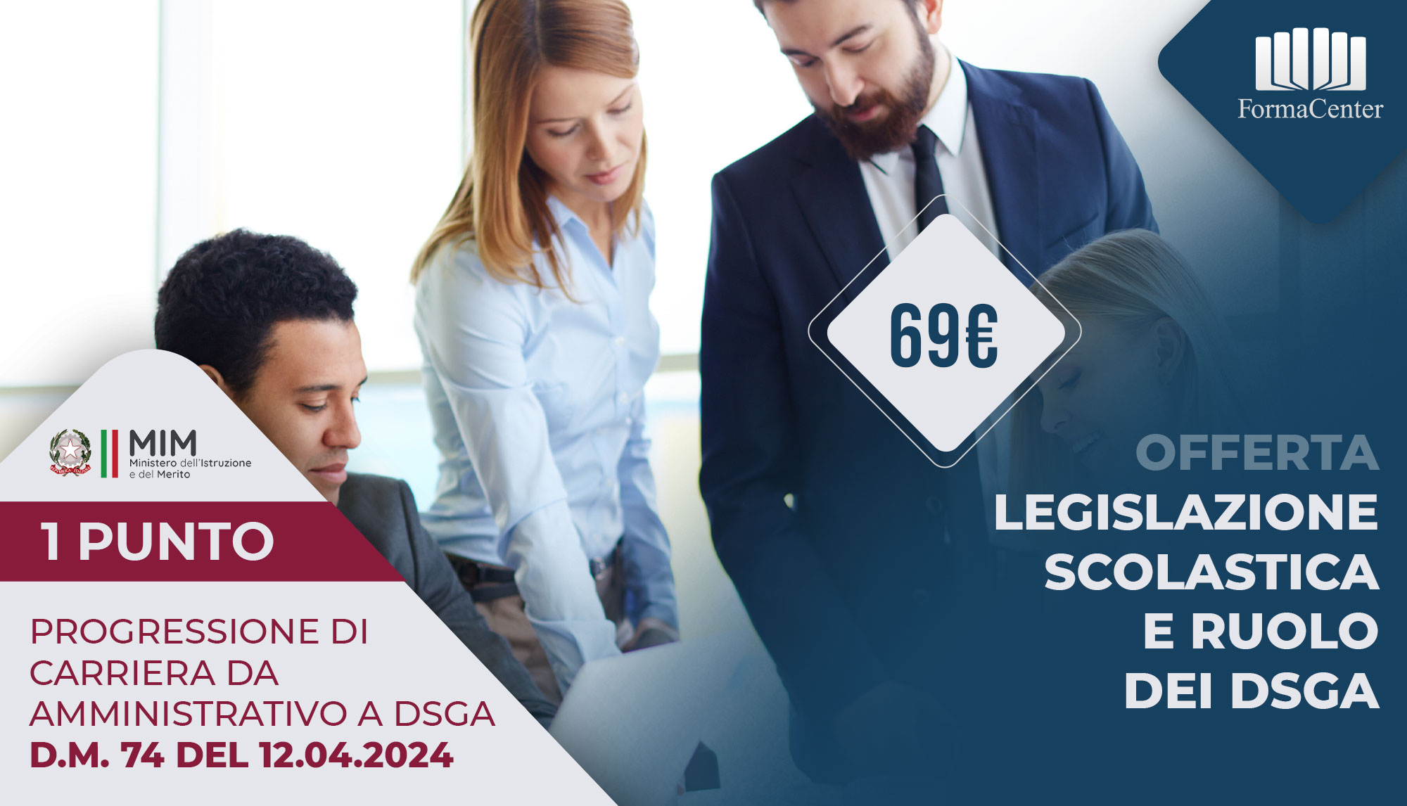 Il corso vale 1 punto secondo quanto stabilito dal decreto n. 74 del 12 aprile 2024, che stabilisce le disposizioni riguardanti la procedura di valutazione per la progressione all'area dei funzionari e dell'elevata qualificazione. Questa procedura fa parte della mobilità verticale ATA reintrodotta dal nuovo CCNL 2019-21 e si rivolge principalmente agli assistenti amministrativi che hanno svolto il ruolo di DSGA.