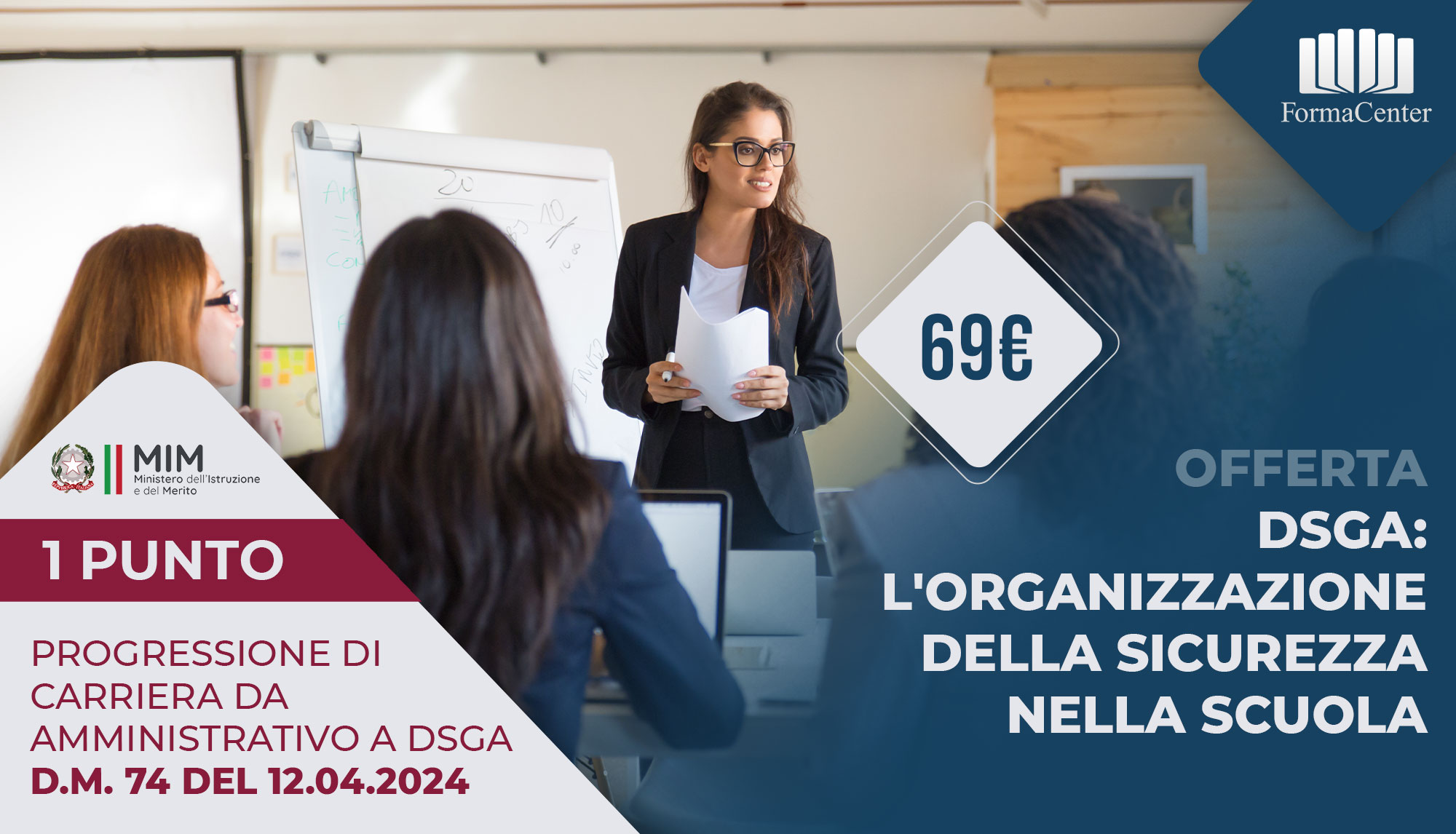 Il corso vale 1 punto secondo quanto stabilito dal decreto n. 74 del 12 aprile 2024, che stabilisce le disposizioni riguardanti la procedura di valutazione per la progressione all'area dei funzionari e dell'elevata qualificazione. Questa procedura fa parte della mobilità verticale ATA reintrodotta dal nuovo CCNL 2019-21 e si rivolge principalmente agli assistenti amministrativi che hanno svolto il ruolo di DSGA.